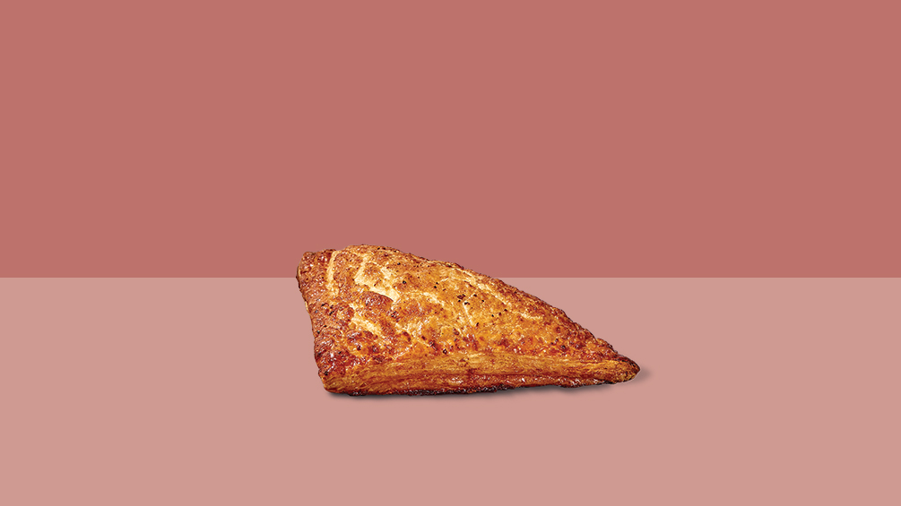 Sloksniuotos tešlos, viduje drėgnas, o išorėje - ypač traškus pyragėlis gali pradžiuginti net dviejų rūšių sūriais - viršuje apkeptu gaudos sluoksniu ir lengvu, viliojančiu mocarelos sūrio įdaru.